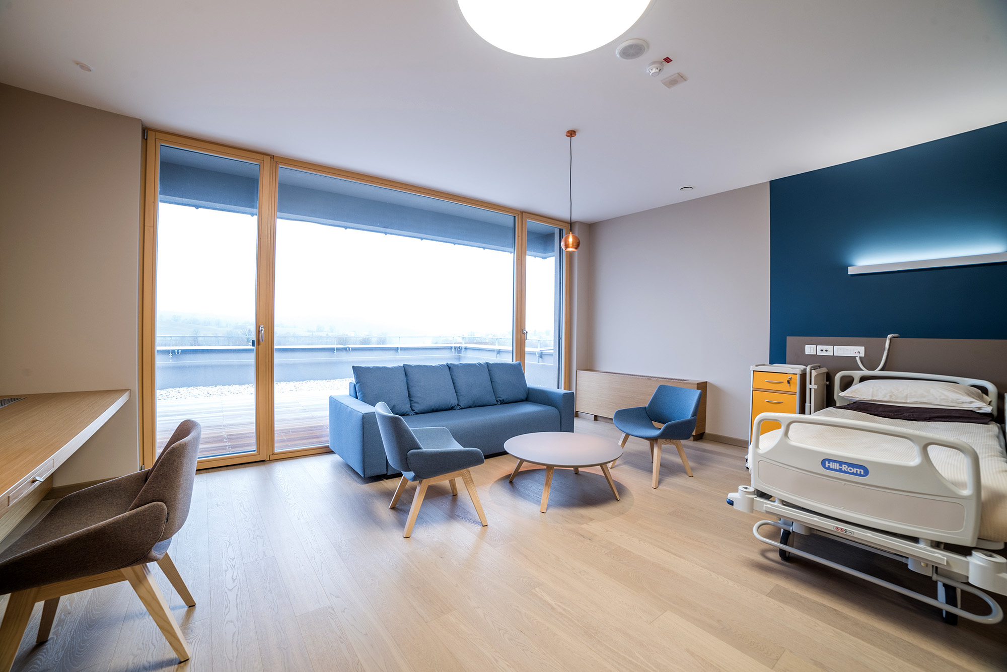 • štiri bolnišnične sobe z eno ali dvema posteljama